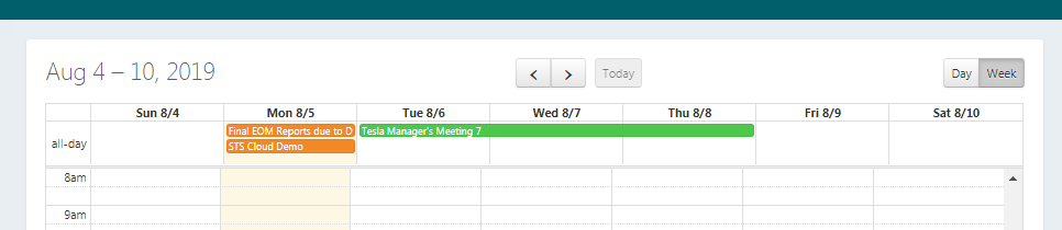 STS Cloud's Event Calendar is a unique view of your property's bookings, demand generator, notes and other items you create and color code to view at a glance by month.