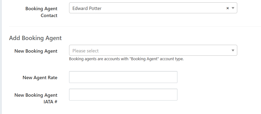 Click into the Booking Agent field. A list of your designated booking agent accounts will popup. Select the agency