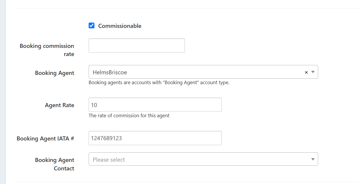 Use the agency rate as needed, inputting this agency commission, or use the same rate as used in Booking Commission Rate if needed