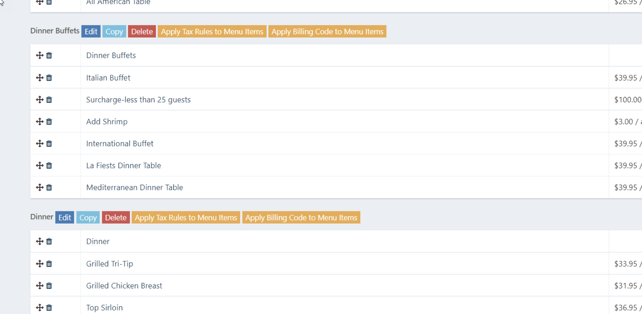 A Menu Category is simply a section, or a way you want to store and look up items. Breakfast, as an example can be a category, and then you can add your plated breakfast menus and your breakfast buffet menus to that category. Some client have a Category called Breakfast Plated, and they load the plated menus in that category, and have a Breakfast Buffet category, and load the buffet menus in that category to find them. See below: