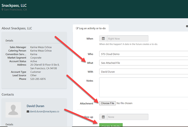Locate the account and open it. Under What, choose See Attached File.