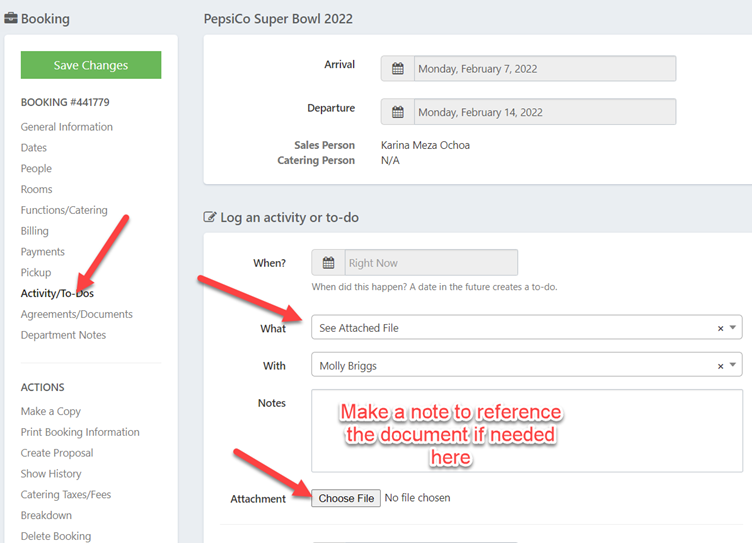 You can also save a file into the Activity/To Do tab of a group booking, so the document will reside within the group as needed.