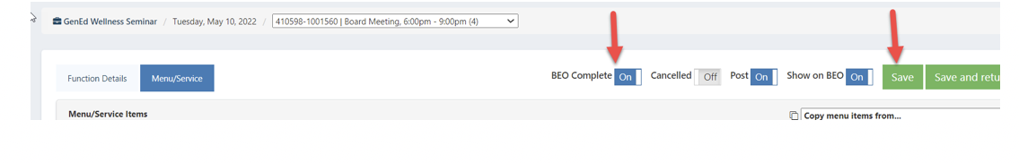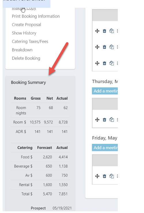 Once BEO’s are marked complete, you will see the Actuals updated on the Function Details tab, the booking summary on the booking screen and in reports.