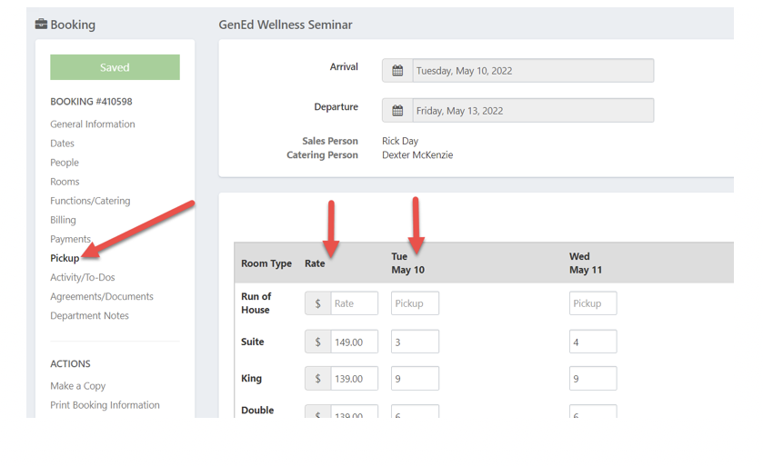 Actual Rooms – the ADR and Room nights entered on the Booking – Pickup tab is used as actual on reports