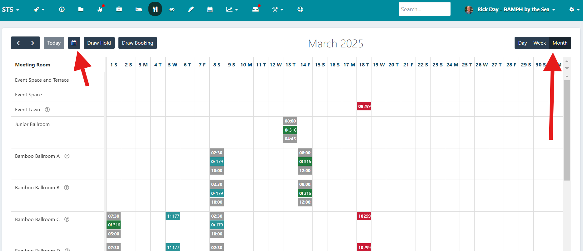 User will click the Knife and Fork icon in the main menu bar to open the Function Diary to check meeting availability and also to quick link to current functions, or place a hold space in a room (IE - Carpet Cleaning, a temporary hold a room and date while negotiating, etc.)