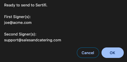 Finally, click the "Send document(s) for e-signature (Sertifi)" button. You'll be presented with a final confirmation dialog: